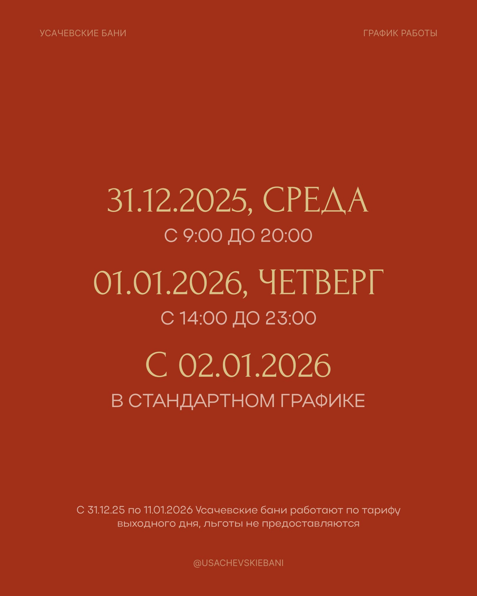 Приглашаем вас начать 2026 год с мягкого прогревающего пара Усачевских бань, чтобы заряда бодрости хватило до самой весны!